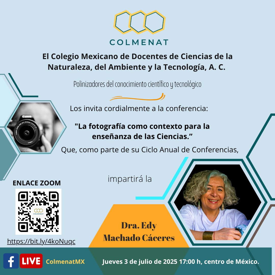 El Colegio Mexicano de Docentes de Ciencias de la Naturaleza, del Ambiente y la Tecnología, A. C., invita a la primera conferencia de su ciclo anual 2025 “La fotografía como contexto para la enseñanza de las Ciencias”.
